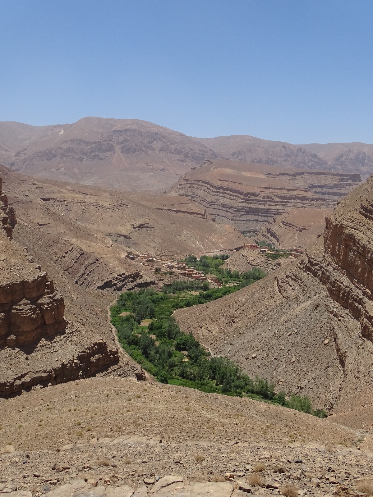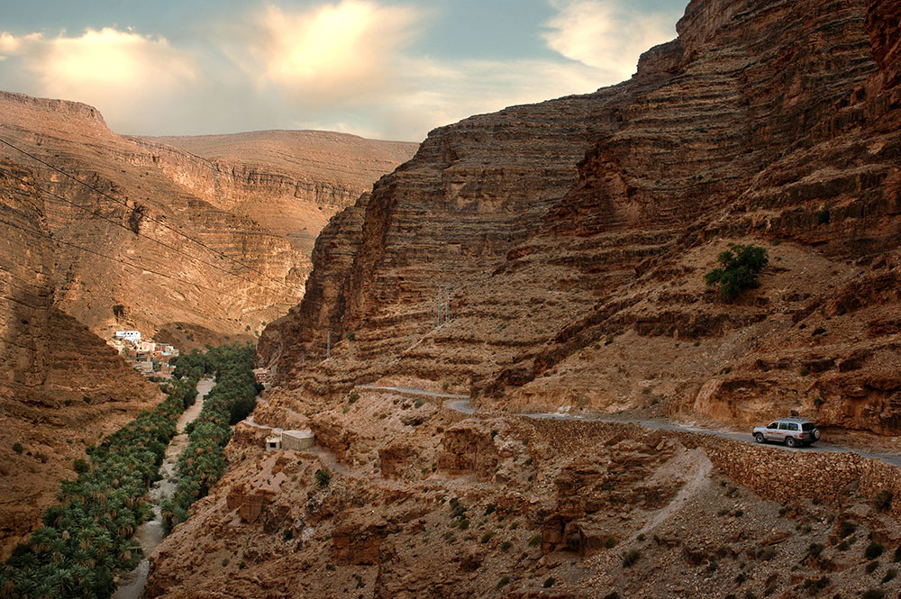• El vessant sud de l’Alt Atles: els oasis d’extensos palmerars, les kasbes («tighermatin» en amazic) i mel·làs (els antics barris jueus) abocant-se al desert.