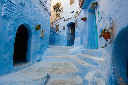 El blau fosc atlàntic i el blanc de les medines s’encenen amb el sol vernal.